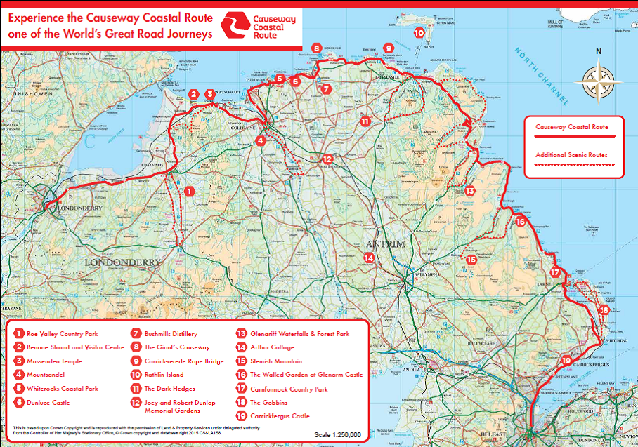 The Giant’s Causeway (44 Causeway Road, Bushmills BT57 8SU) A geological wonder steeped in legend and folklore. Discover the Giant’s Causeway, Northern Ireland’s only UNESCO World Heritage Site, home to a wealth of local history and legend. Explore the geological phenomenon of 40,000 basalt columns formed by volcanic eruptions over 60 million years ago. Discover the legend of the Giant Finn Mac Cool and search for distinctive stone formations such as the Camel, Wishing Chair, Harp and Organ. Visitor facilities: Interactive exhibition, outdoor audio guide, gift shop. A minibus service to the Causeway stones is provided at a small charge. Disabled access. Admission charge. T 028 2073 1855 (Visitor Centre) www.nationaltrust.org.uk